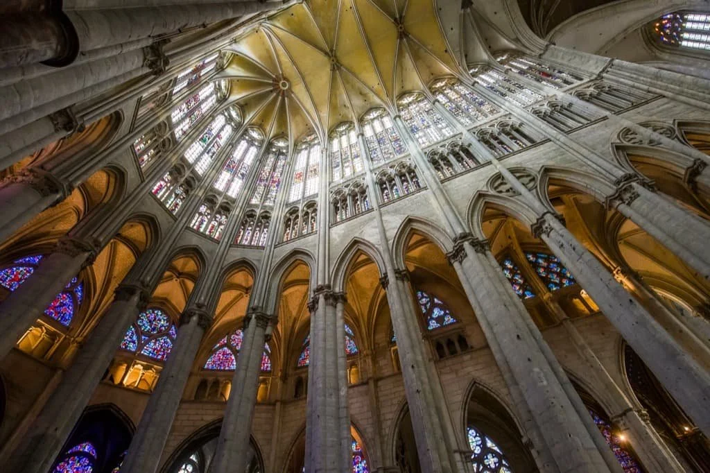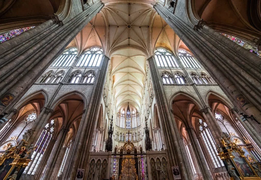 The next stop on your France cathedral tour, about 90 minutes from Paris by car or slightly faster by train, Chartres Cathedral is one of the original UNESCO World Heritage Sites. This is not just because of the scale, but the importance of the decision made by the unknown master builders. By reducing the interior elevation from four storeys to three, they changed the entire trajectory of European ecclesiastical architecture.