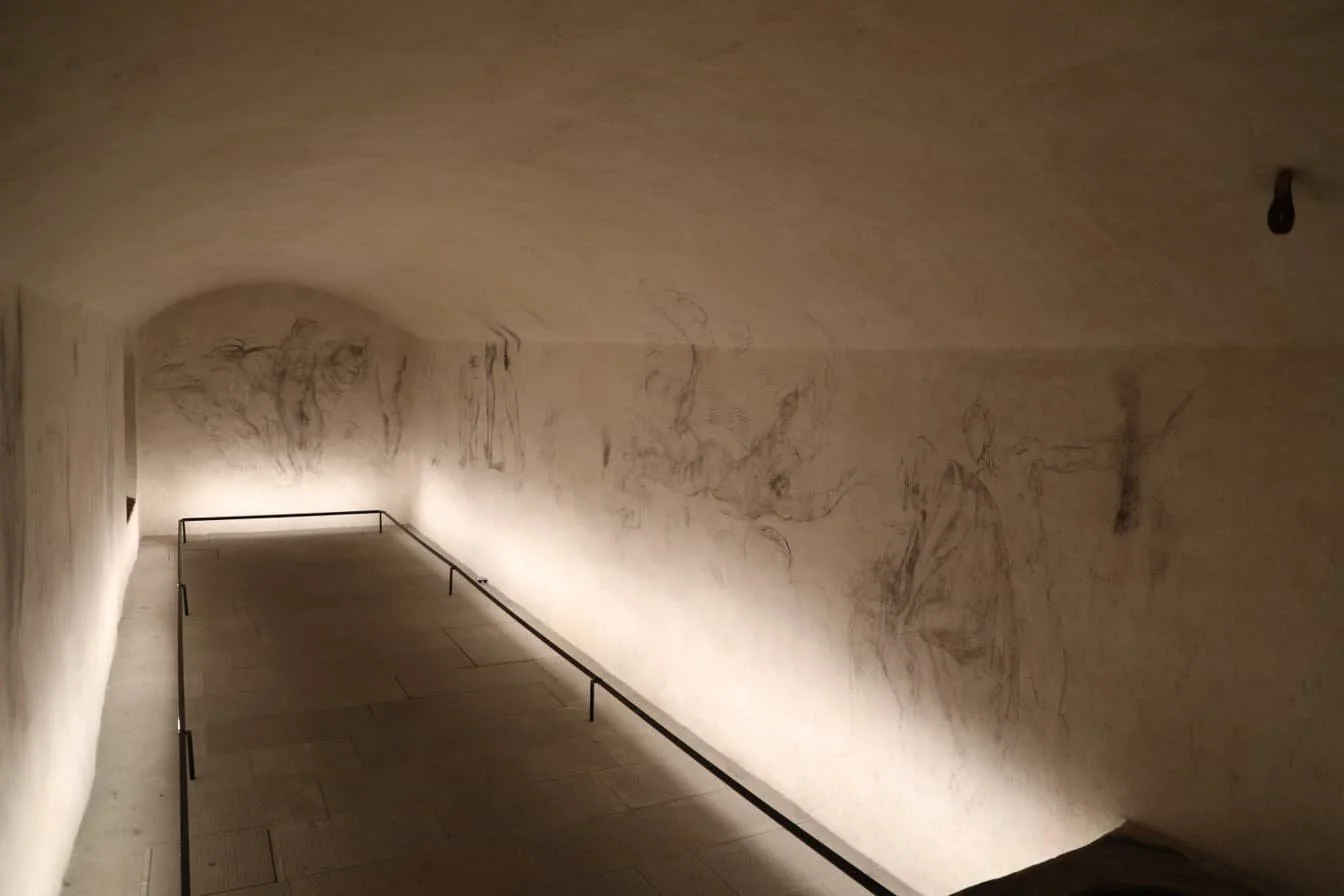 And if you do get down there, it’s a rare opportunity to get about as close to Michelangelo as you can. There is no glass case, no crowd control rope, no air-conditioned gallery. The space is barely high enough to stand in. The drawings are at arm's length, traced on bare walls by a hand that is synonymous with art, the world over.